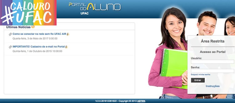 Desde 2012, os estudantes da Universidade Federal do Acre (Ufac) contam com o acesso a diferentes informações acadêmicas concentradas em um sistema de fácil e simples acesso, o Portal do Aluno. Desenvolvido pela equipe do Núcleo de Tecnologia e Informação (NTI), o espaço tem simplificado a rotina dos discentes de todos os cursos da instituição.