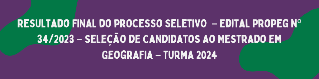 | Resultado Final do Processo Seletivo – Edital Propeg nº 34/2023 – Seleção de Candidatos ao Mestrado em Geografia – turma 2024 | Notícia |